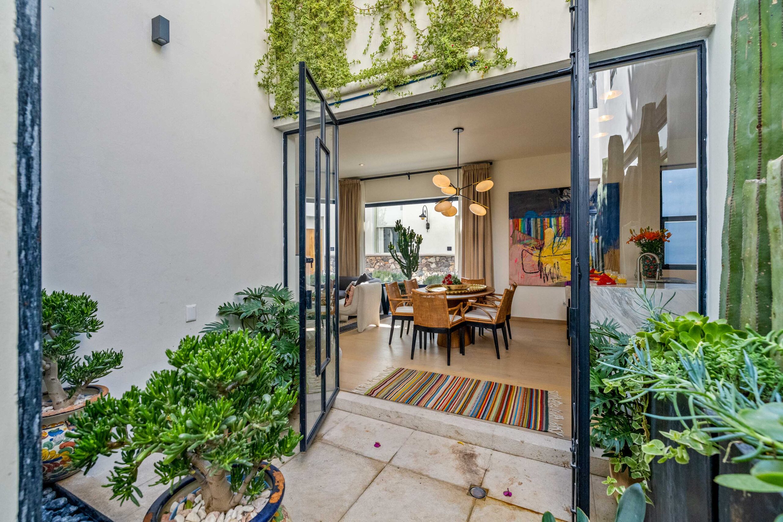 Within historic San Miguel de Allende, the new gated community of Amoray—located in the heart of San Antonio, across from the church plaza and a block from our SoHo of San Miguel, Stirling Dickinson—Casa Amoray presents like a finely jeweled Fabergé Egg, detailed down to the square centimeter! Designed and furnished by a renowned interior designer, this home is magazine-ready for its debut in Architectural Digest!